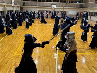 | 恒例となった古沢小学校で年越し稽古が開催され2025年の稽古納め&2026年初稽古がおこなわれました。岬少剣の会員をはじめ、卒業生、いすみ市内、長生地域からもご参加いただき小学生から一般剣士まで約70名が稽古で年を越しました。ご参加いただきました皆さん、会場の準備をしてくださった保護者の方々ありがとうございました。 | |